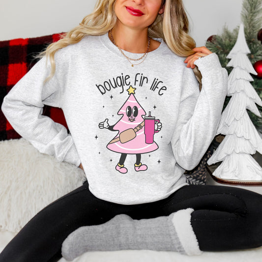 Bougie Fir Life Sweatshirt, Pink Christmas Tree Sweater, Trendy Holiday Shirts, Cute Xmas Crewneck, Winter Sweatshirt, Aesthetic Hoodies