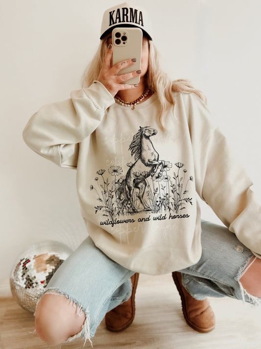 Wildflowers And Wild Horses Sweatshirt, Country Music Shirt, Country Music Hoodie, Western Crewneck, Cowgirl Sweatshirt, Nashville Shirt