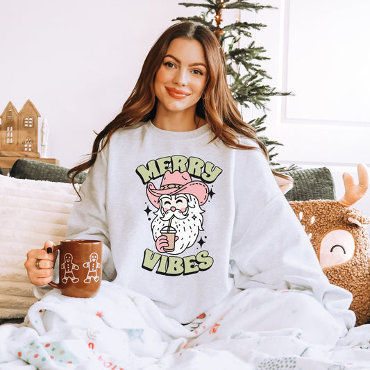 Merry Vibes Sweatshirt, Cowboy Santa Shirt, Western Christmas Sweatshirt, Cowgirl Christmas, Country Christmas, Cute Holiday Tees, Howdy